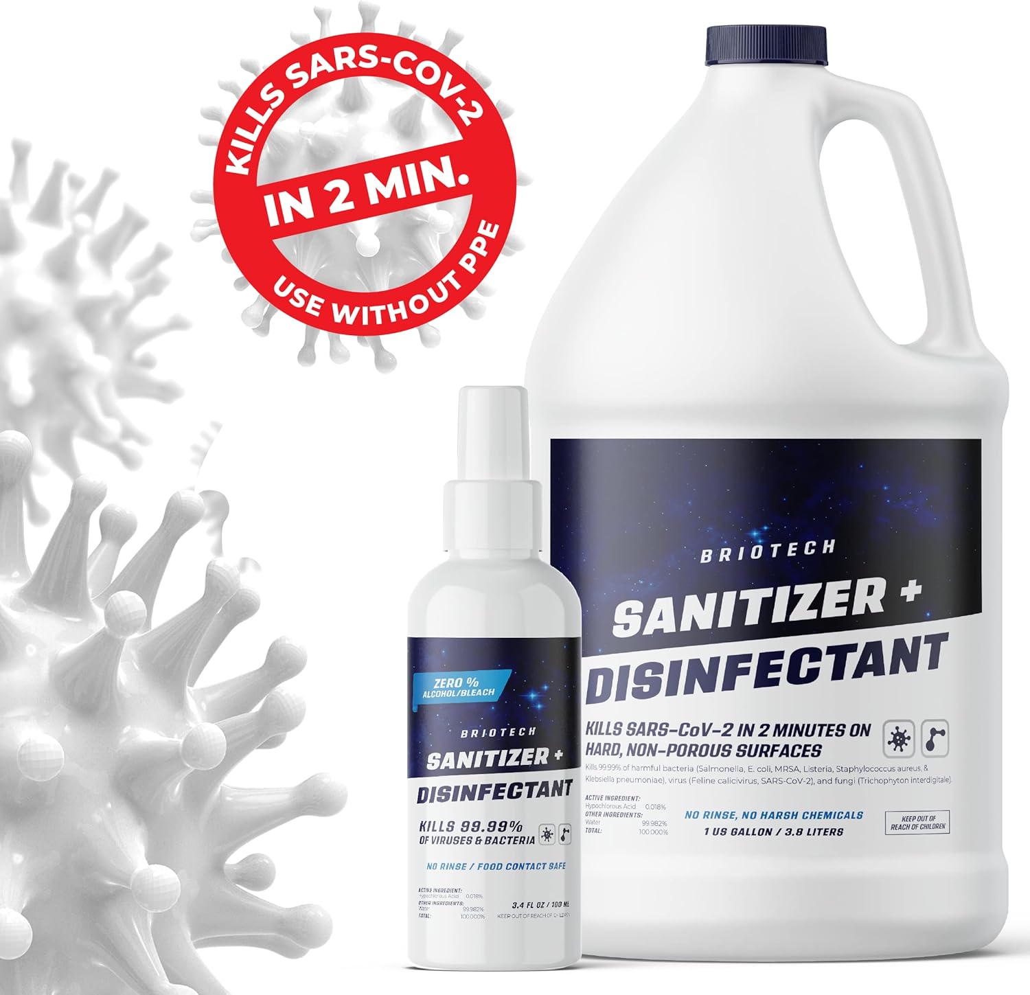 8 reviews for BRIOTECH Sanitizer Disinfectant Hypochlorous, Kill 99.99% of Viruses & Bacteria, Control Mold, Eliminate Odor, Gentle for Nursery & Play Rooms, Food Contact Surface Sanitizer, 1 Gallon Refill