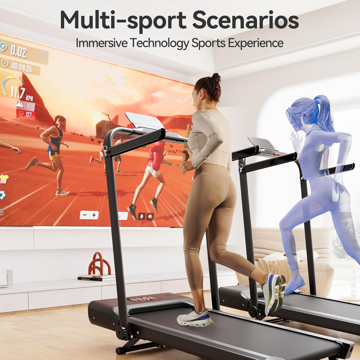 Space-Saving Folding Treadmill for Small Spaces:Engineered for compact living,this folding treadmill with incline stores vertically at just 5.45 inches tall. Easily tuck it under a bed or sofa—a perfect portable treadmill for apartments and small homes. A true solution among treadmills for home small.
